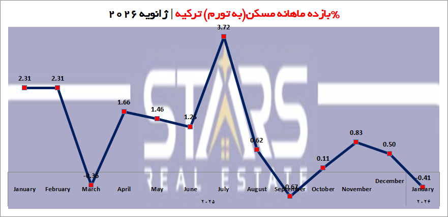 دادههای رسمی مرکز آمار ترکیه نشان میدهند که در ماه ابتدایی سال ۲۰۲۶ شکاف تورمی میان بخش مسکن و سایر کالاها همچنان به سود مالکان است. این موضوع تأییدی بر خاصیت ضدتورمی ملک در اقتصادهای متغیر است.
