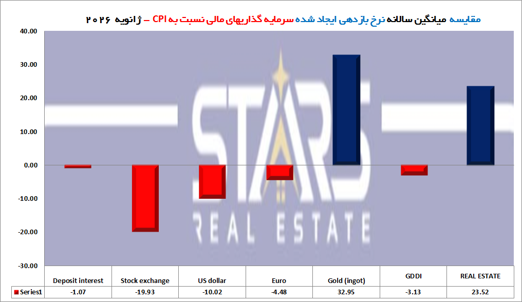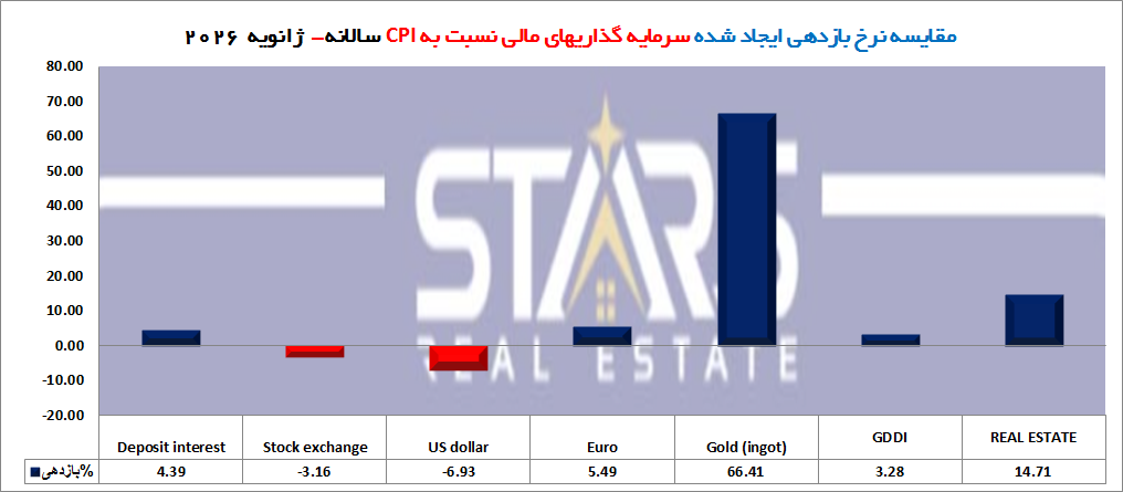 تحلیل دادههای ژانویه ۲۰۲۶ ثابت میکند که بازارهای مالی ممکن است نوسانات کوتاهمدت زیادی داشته باشند اما ملک و طلا داراییهای ماندگار این اقتصاد هستند. بازار مسکن با میانگین بازدهی بالای ۲۳% نشان داد که مطمئنترین مسیر برای رشد سرمایه است. شرکت استارز پیشنهاد میکند پیش از اشباع قیمتها در ماههای آینده نسبت به بهینهسازی سبد ملکی خود اقدام کنید.