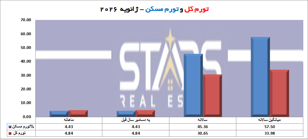 مقایسهی تورم مسکن و تورم کل (ژانویه ۲۰۲۶):